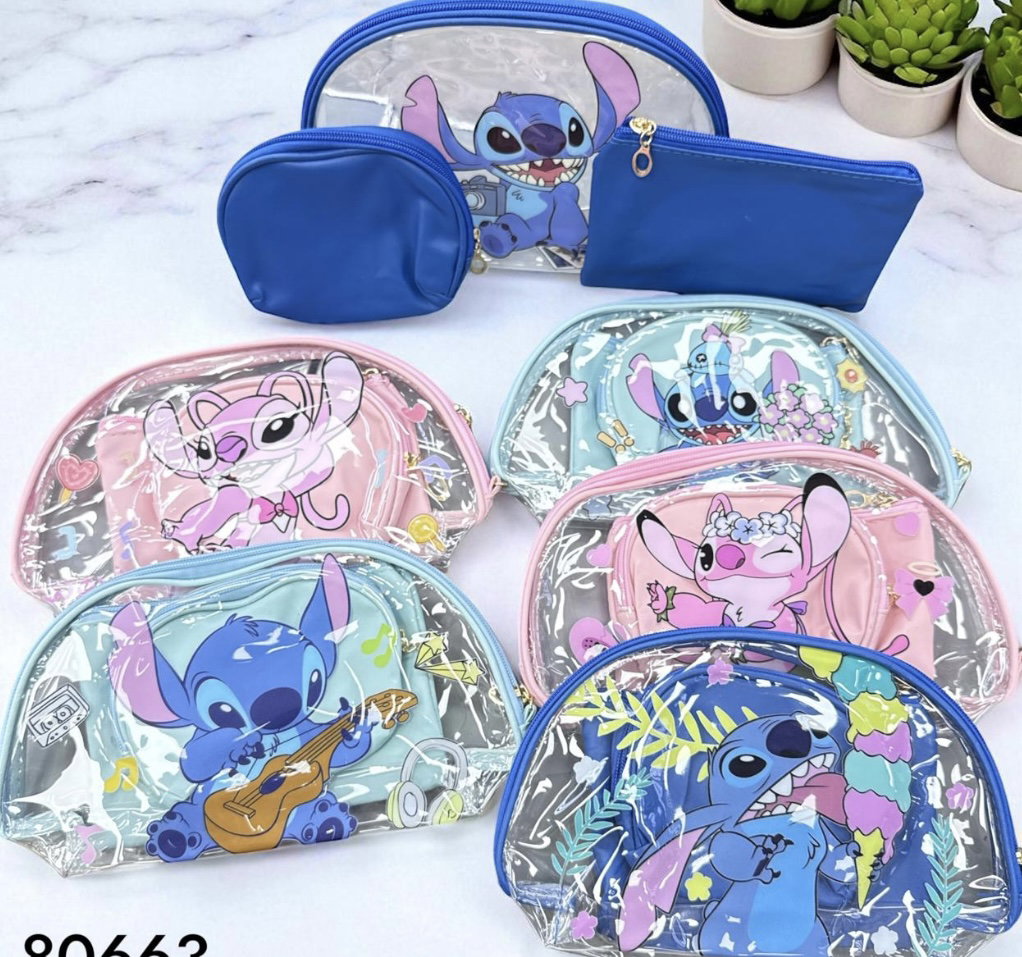 NECESER PORTA COSMETICOS 3PCS STITCH - 3 SETS